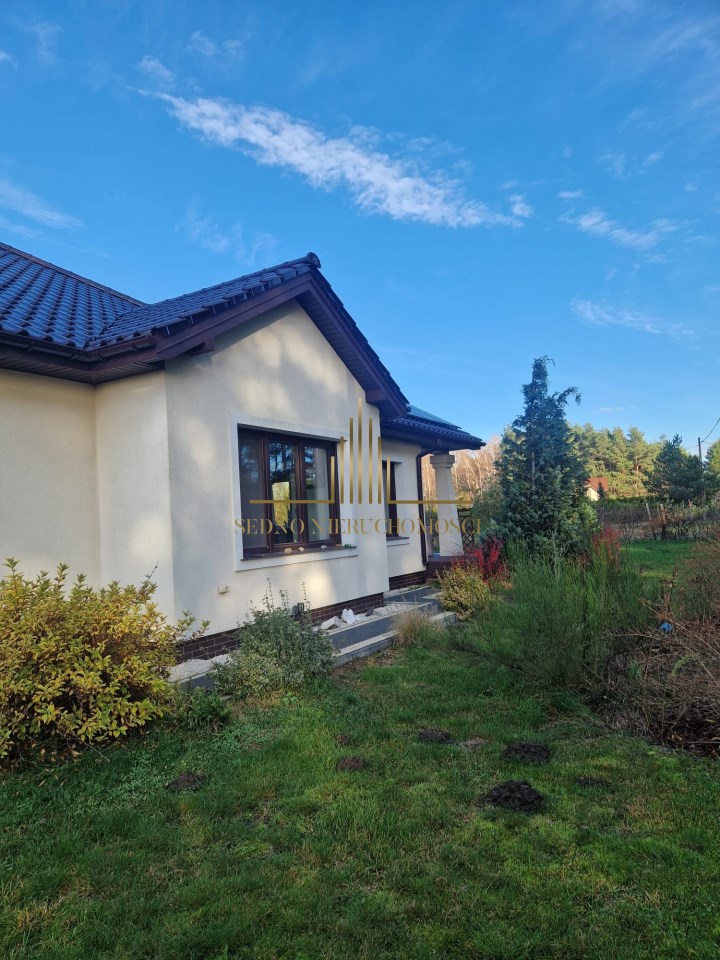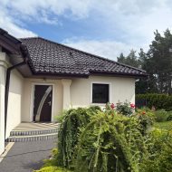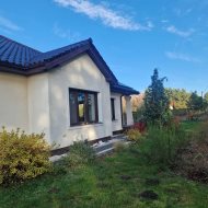 Budynek jednopiętrowy, usytuowany jest w zacisznym miejscu, na dużej działce o powierzchni 3.108 m2. Dom wybudowany wg projektu Arabella 2 z pracowni Horyzont. W trakcie adaptacji projektu wprowadzone zostały zmiany. Dach domu pokryty dachówką ceramiczną glazurowaną marki Creaton.