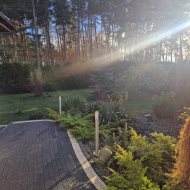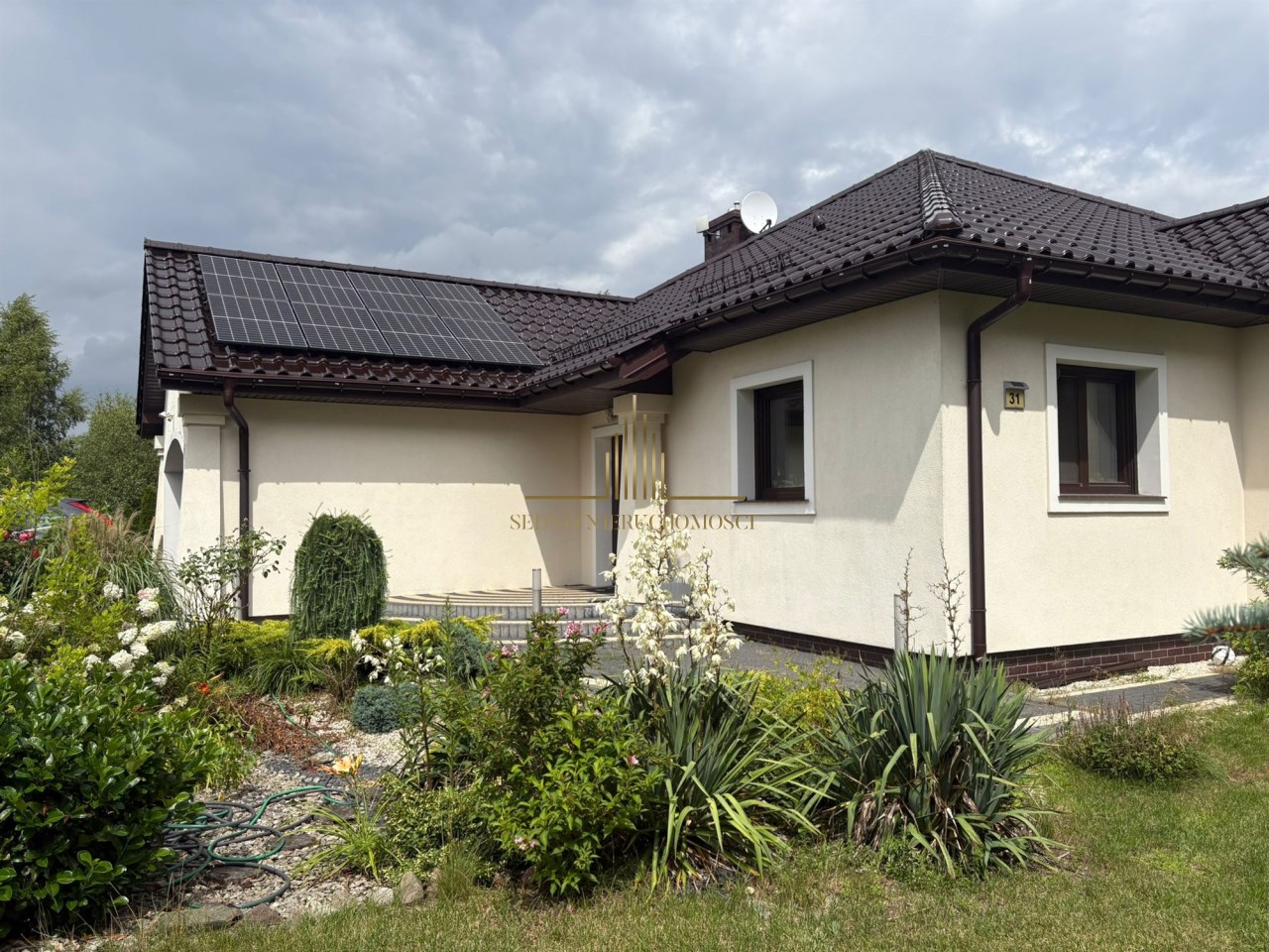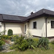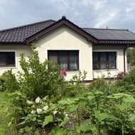 Ogrzewanie domu za pomocą gruntowej pompy ciepła renomowanej marki Vailant z 4 odwiertami po 72 mb, dodatkowo została zamontowana instalacja fotowoltaiczna o mocy 7,4 kWp. Pompa ciepła jest tak dobrana żeby mogła obsłużyć dodatkową powierzchnię. W domu wszędzie zamontowane ogrzewanie podłogowe, również w garażu można włączyć wg swoich potrzeb.