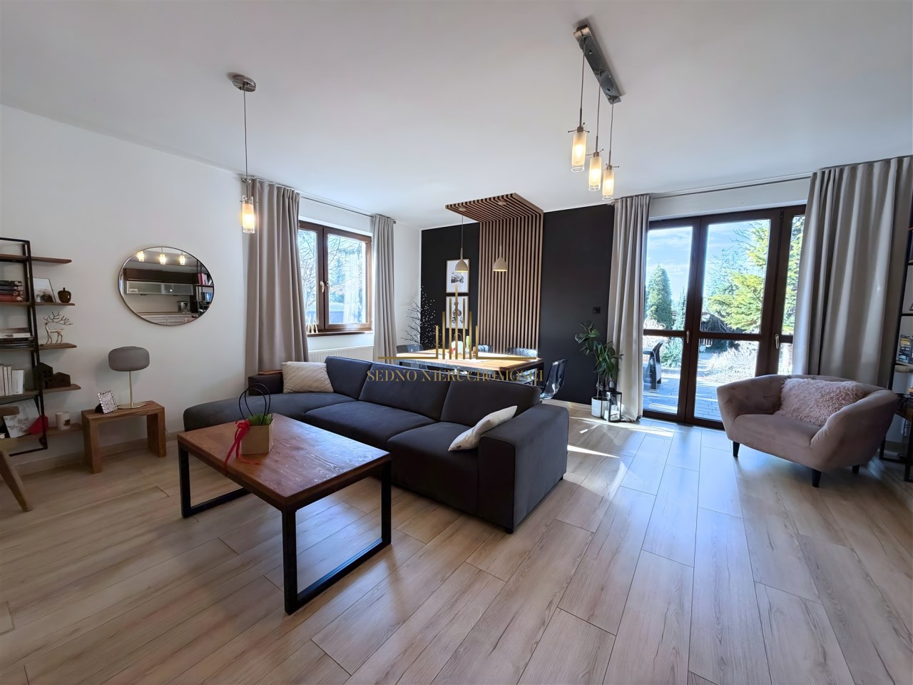 Niewątpliwie trzeba wspomnieć o dużym, zadaszonym tarasie na którym możemy spędzić miło chwile po całym dniu pracy.