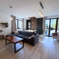 Dodatkowo w bryle budynku znajduje się w pełni wyposażone mieszkanie o powierzchni ok. 50m2 z osobnym wejściem składające się z salonu z aneksem kuchennym, sypialni oraz łazienki.