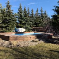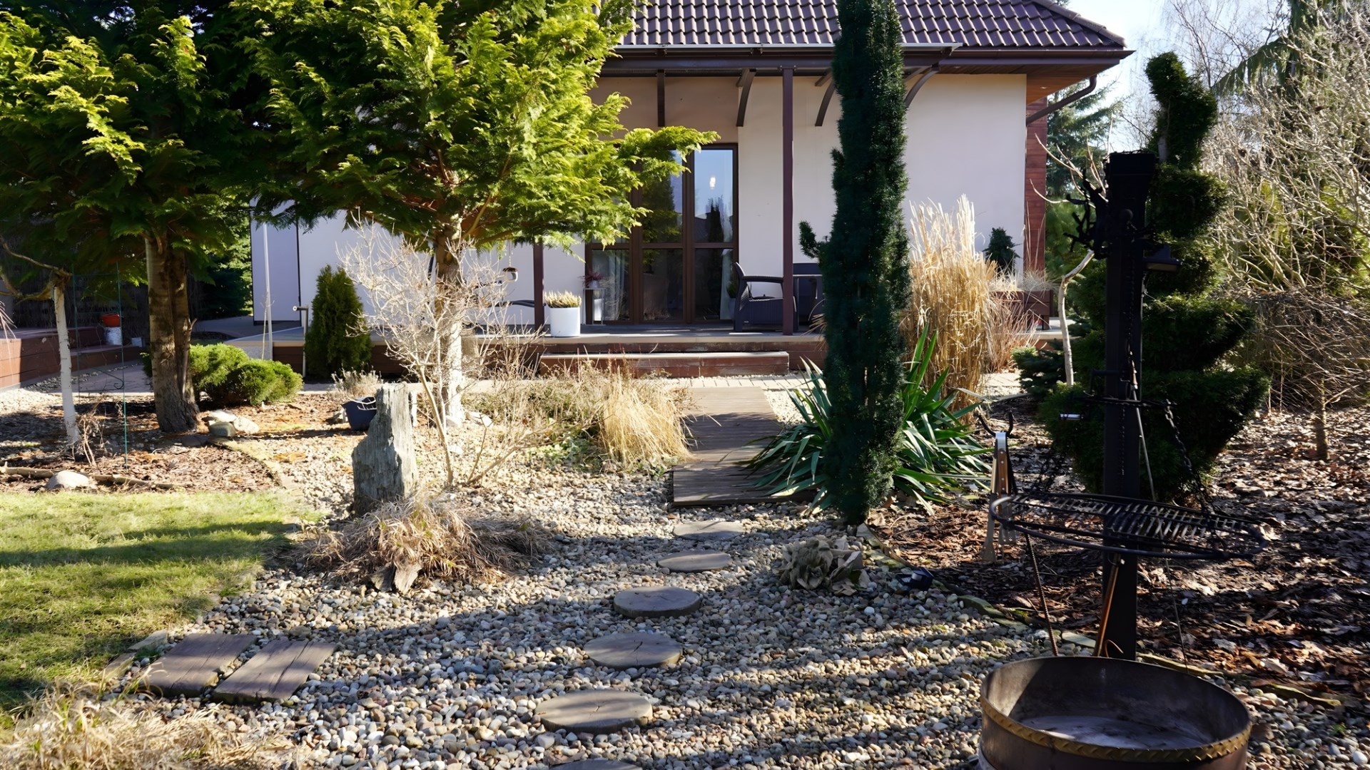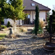 Ogród jest w całości zagospodarowany. Oprócz roślinności która nadaje piękna przestrzeni zewnętrznej znajdziemy altanę z grillem oraz basen :)