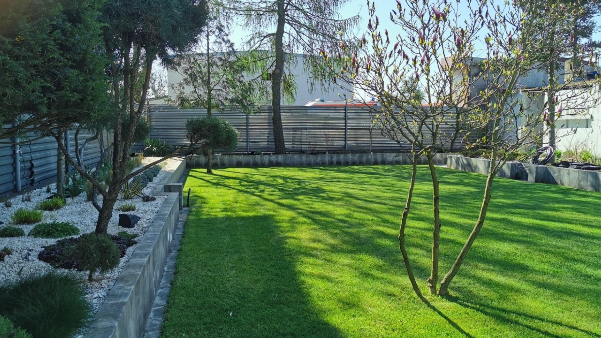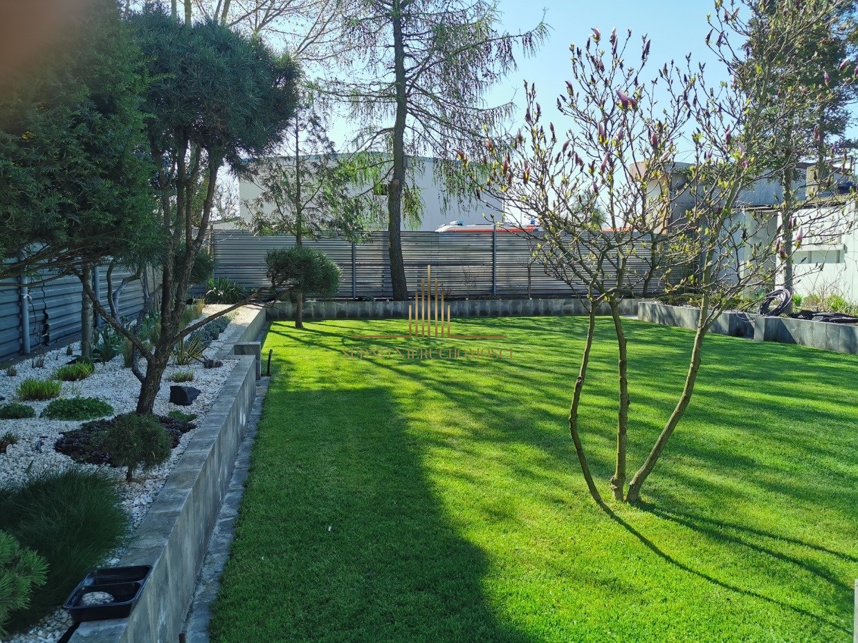 Bezdyskusyjnie ogromnym atutem tej nieruchomości jest ogród, który został zaprojektowany w sposób przemyślany i nietuzinkowy a sama jego realizacja to rozwiązania najwyższej jakości by móc finalnie cieszyć się jego wyjątkowym urokiem, gdzie czas się zatrzymuje i w danym momencie nic innego się nie liczy poza chwilą relaksu. W ogrodzie tym znajdziemy niespotykane nasadzenia, rośliny kupowane w sprawdzonych hodowlach i szkółkach w kraju oraz za granicą w tym drzewa kilkunastoletnie.