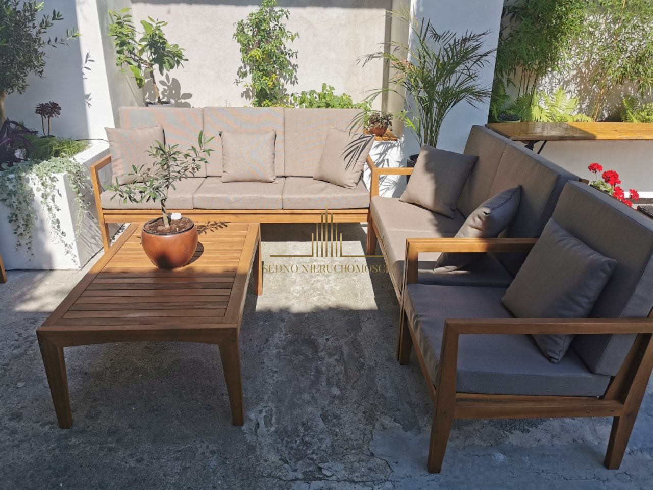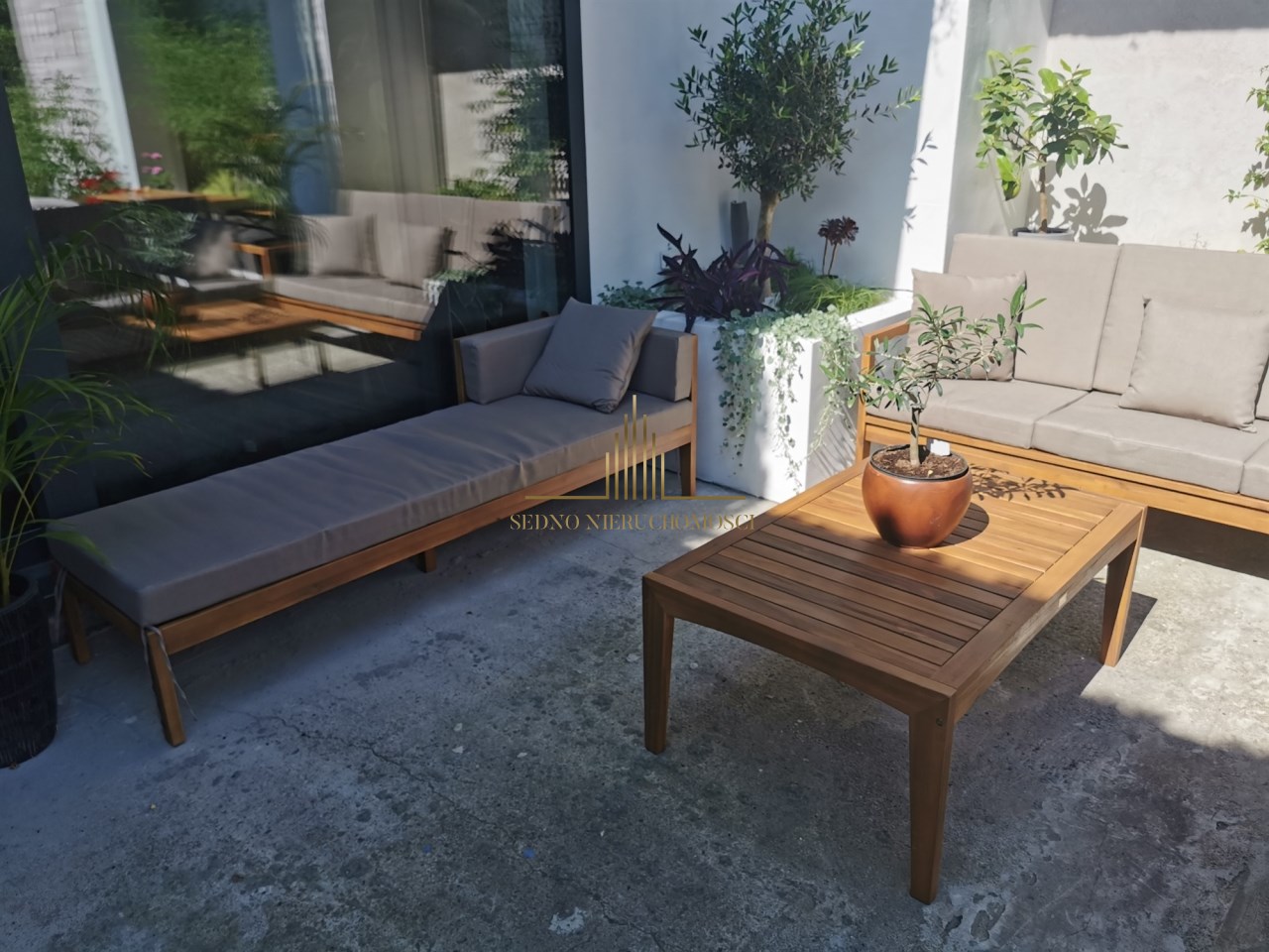 - dolny taras odkryty z miejscem na duży stół, wędzarnię pow. 42m2