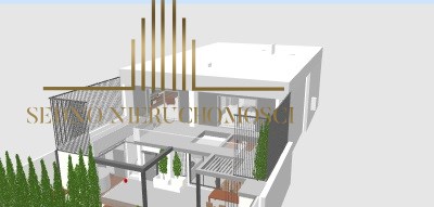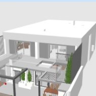 - dolny taras zadaszony - szklany sufit (przeznaczony na ogród zimowy, bar, kominek zewnętrzny PANADERO, kuchnia zewnętrzna z grillem pow. 32m2