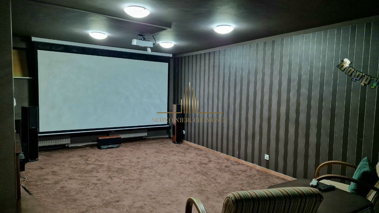 Podpiwniczenie o powierzchni 118 m² zostało zaaranżowane jako prywatna przestrzeń wypoczynkowa – z kinem domowym, barem oraz częścią klubową. To idealne miejsce na wieczorne spotkania i odpoczynek w gronie najbliższych.