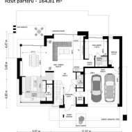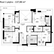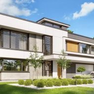 Willa zaprojektowana została w nowoczesnym stylu, z naciskiem na komfort, funkcjonalność i estetykę. Przemyślany układ pomieszczeń zapewnia wygodę codziennego życia oraz przestrzeń do wypoczynku i pracy. Duże przeszklenia naturalnie doświetlają wnętrza i otwierają dom na widok zielonego otoczenia, tworząc harmonijne połączenie architektury z naturą.