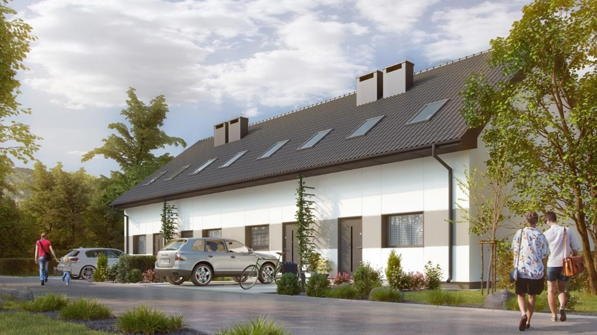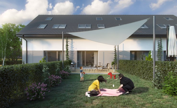 Każdy segment posiada swój ogród z tyłu i przodu domu.