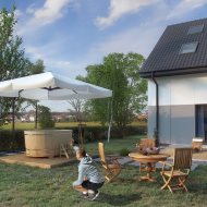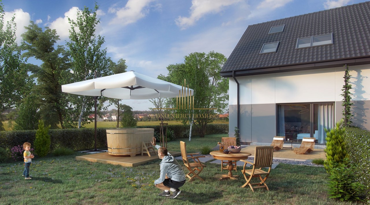 Dom zaprojektowany tak, żeby koszty jego utrzymania były jak najniższe. Odpowiednie ocieplenie i izolacja budynku wraz z rekuperacją pozwolą zmniejszyć koszty ogrzewania. Indywidualny projekt domu tworzy funkcjonalny i ergonomiczny układ przestrzeni . Na parterze, obszerna strefa dzienna , poprzez szerokie rozsuwane drzwi salonu płynnie przechodzimy na taras i do ogrodu . Otwarta i praktyczna kuchnia zaprojektowana w kształcie litery „L” ułatwi życie szefowi kuchni. Na piętrze znajdziemy trzy wygodne pokoje, które możemy dowolnie zaaranżować pod nasze potrzeby. Znajduję się tu również główna łazienka. Do dyspozycji mamy również poddasze idealnie nadające się na czwarty pokój, składzik, gabinet, pokój gier i wiele innych naszych pomysłów.