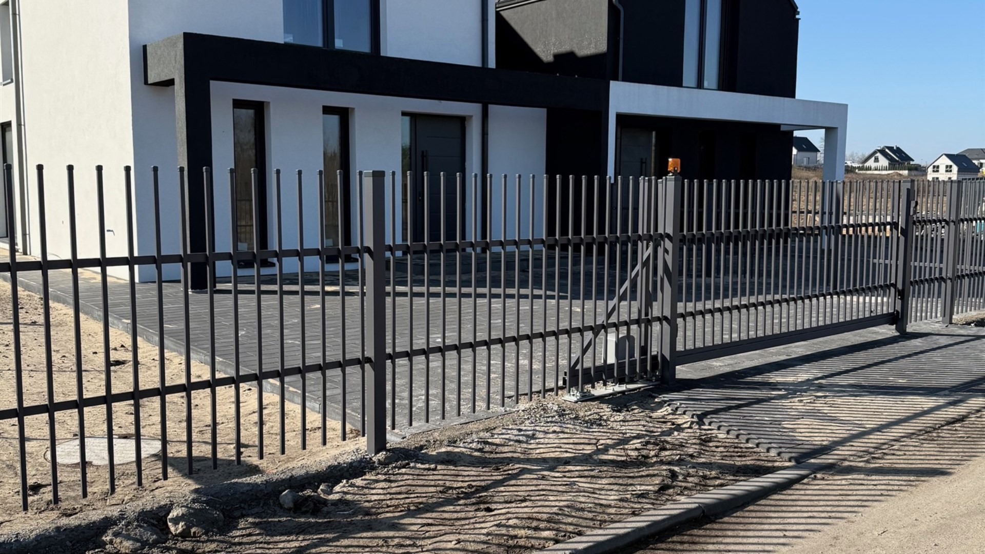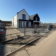Podjazd wyłożony kostką , zrobiona opaska wokół domu oraz taras na którym znajdziemy płyty.