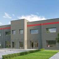 b) wysokość budynku max. 10 m ponad poziom terenu, dach płaski