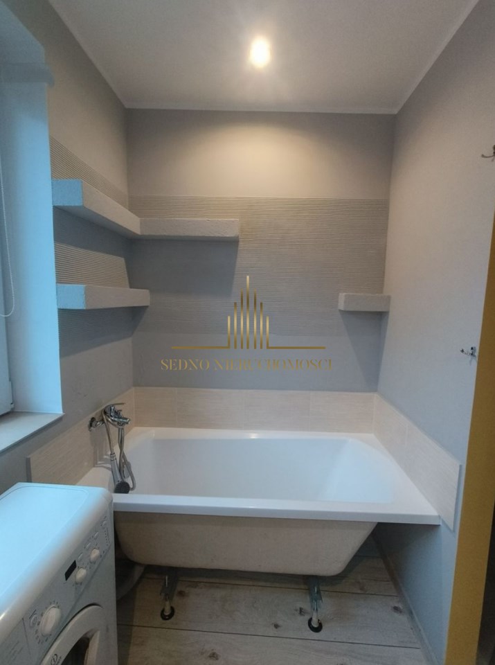 Nowe instalacje elektryczne. Okna szczelne z PCV. W łazience położone kafle ceramiczne na podłogach. Podłogi pokoju i kuchni wyłożone panelami. Ściany - gładź gipsowa. W kuchni niezbędne AGD (płyta gazowa, lodówko-zamrażarka).