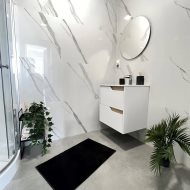 - Płytki w łazienkach z nową armaturą