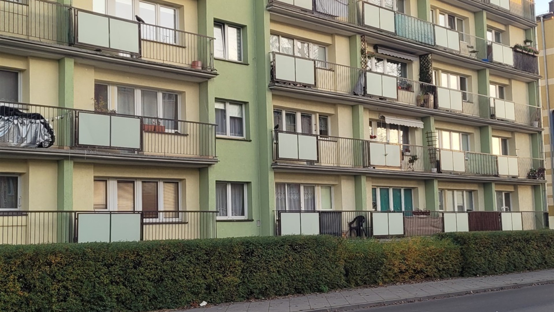 Budynek został wybudowany w 1964 roku z cegły, okna w mieszkaniu PCV. Układ pomieszczeń funkcjonalny i ustawny. Mieszkanie bardzo ciepłe, słoneczne - środkowe, ocieplony blok. Zostały wymienione w całym bloku piony wodno-kanalizacyjne. W salonie na podłodze wykładzina a pod nią parkiet, w sypialni parkiet, w kuchni, łazience i przedpokoju położone są płytki. Kuchnia posiada meble, kuchenkę gazową z piekarnikiem, lodówkę i pralkę. W łazience wanna.