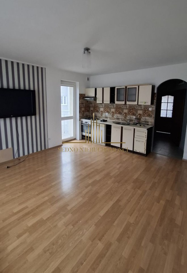 Mieszkanie składa się z przestronnego salonu z aneksem kuchennym i wyjściem na ustawny balkon, sypialni, łazienki oraz przedpokoju.