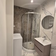 - łazienka z prysznicem i wc, umywalka
