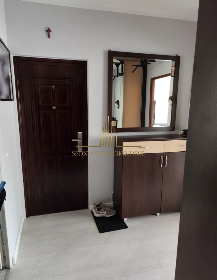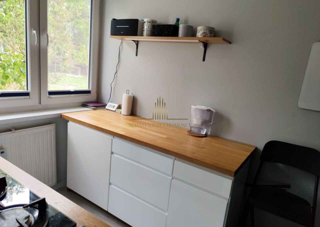 Wnętrze to salon z wyjściem na ogromny balkon, oddalona od salonu sypialnia, oddzielna, jasna kuchnia, łazienka, WC, ustawny przedpokój. Gotowe do zamieszkania lub aranżacji przez nowych właścicieli. Do mieszkania przynależy piwnica. Pod blokiem wiele wolnych miejsc parkingowych dla mieszkańców.