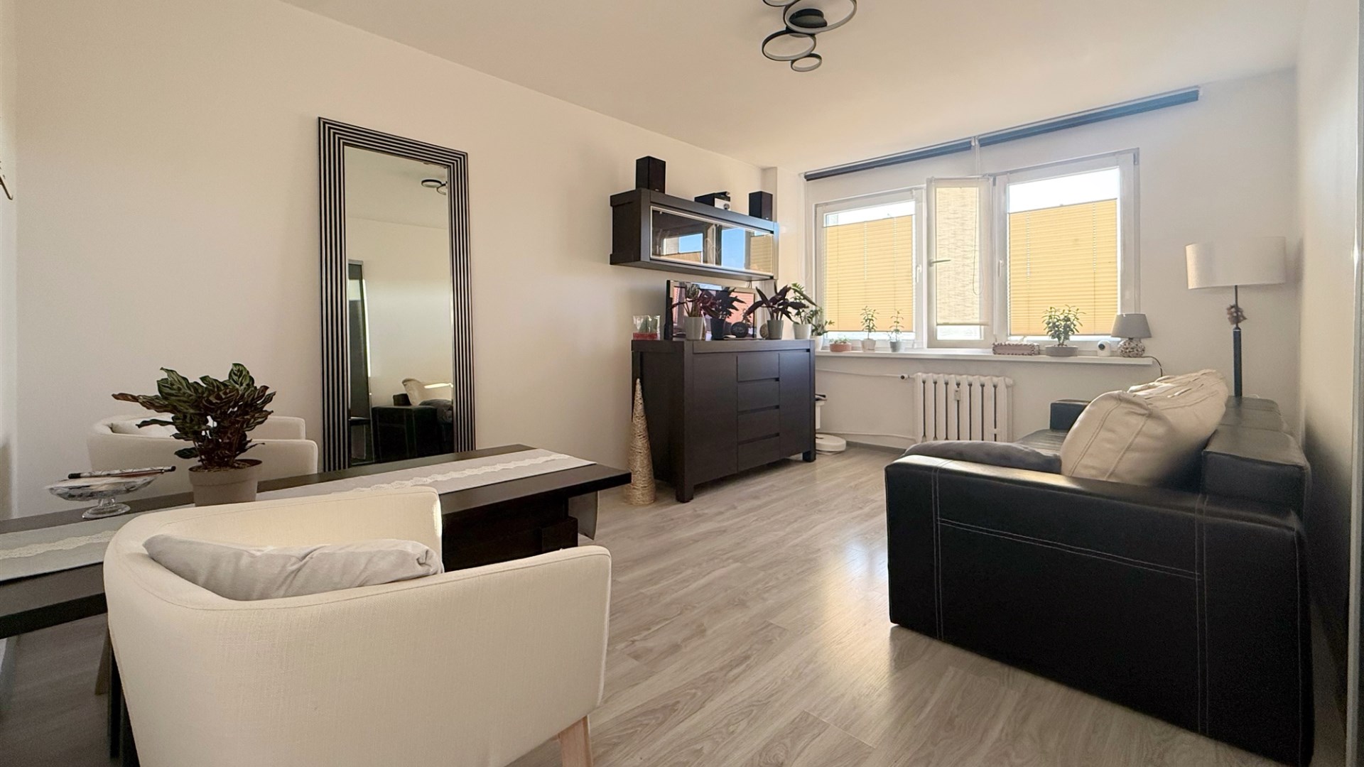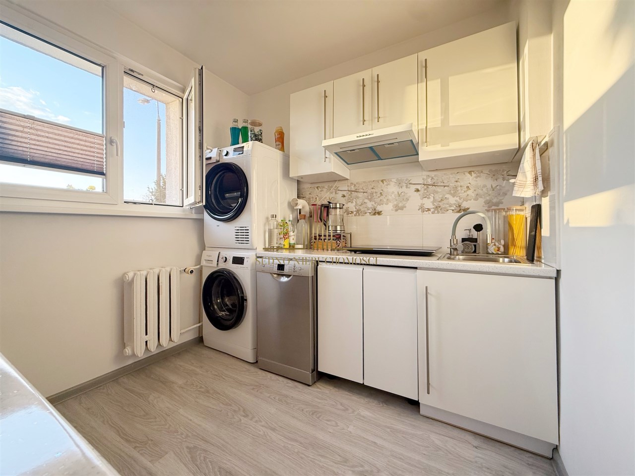 Kuchnia oraz łazienka przeszły generalny remont w 2025 roku – wykończone są w nowoczesnym standardzie, z dbałością o detale. Kuchnia wyposażona jest w estetyczne meble z białymi frontami. W całym mieszkaniu położone są jednolite panele podłogowe, co dodatkowo podkreśla spójność wnętrza.