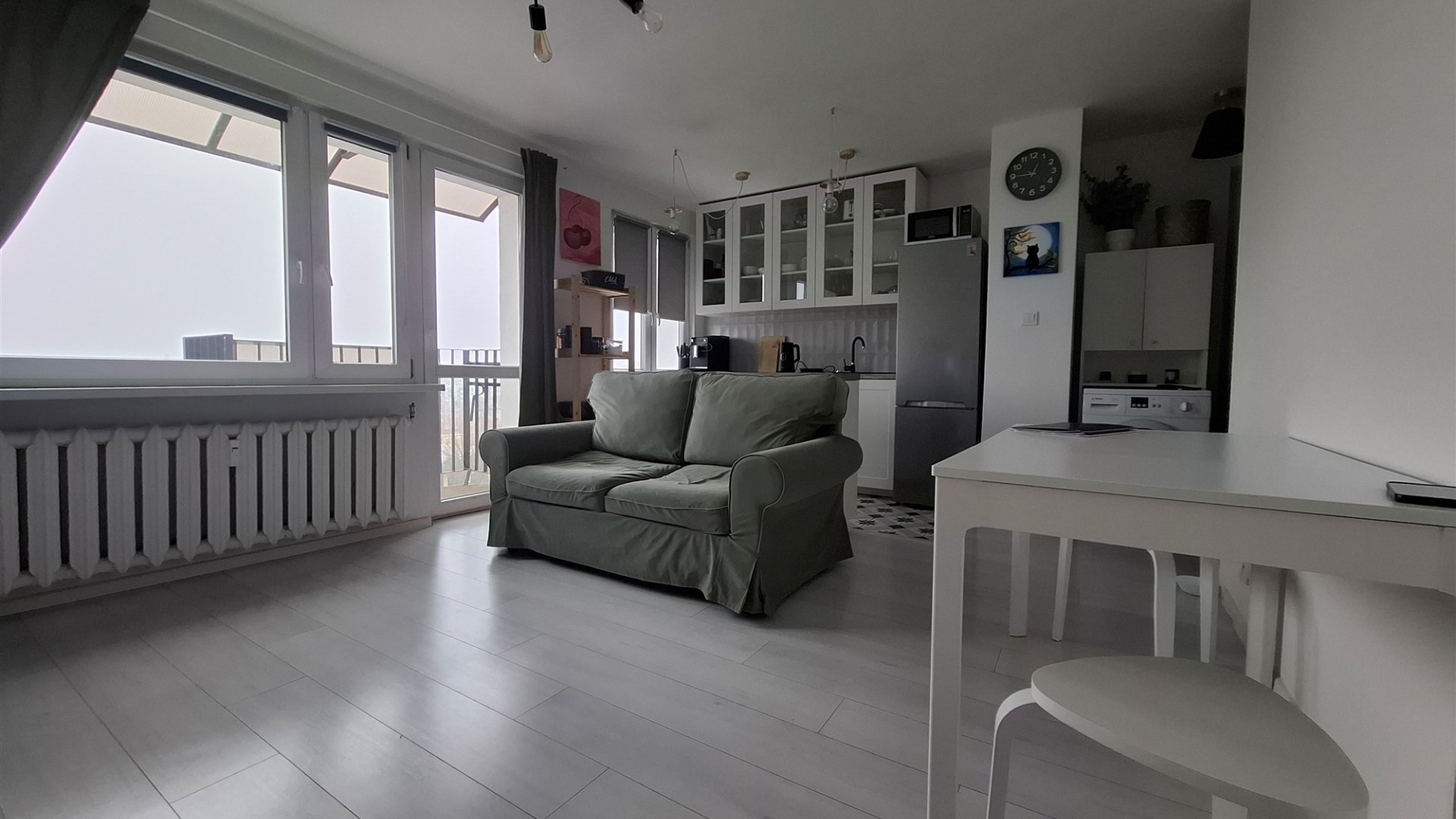 Wnętrze to 3 pokoje na ok. 48 m2, a w tym salon z wyjściem na balkon i aneksem kuchennym, 2 sypialnie, łazienka z WC, przedpokój. Z balkonu rozciąga się piękna zachodnia panorama miasta. Okna salonu i kuchni o ekspozycji zachodniej, z sypialni i gabinetu wychodzące na południe. Spokojne sąsiedztwo. Gotowe do zamieszkania.