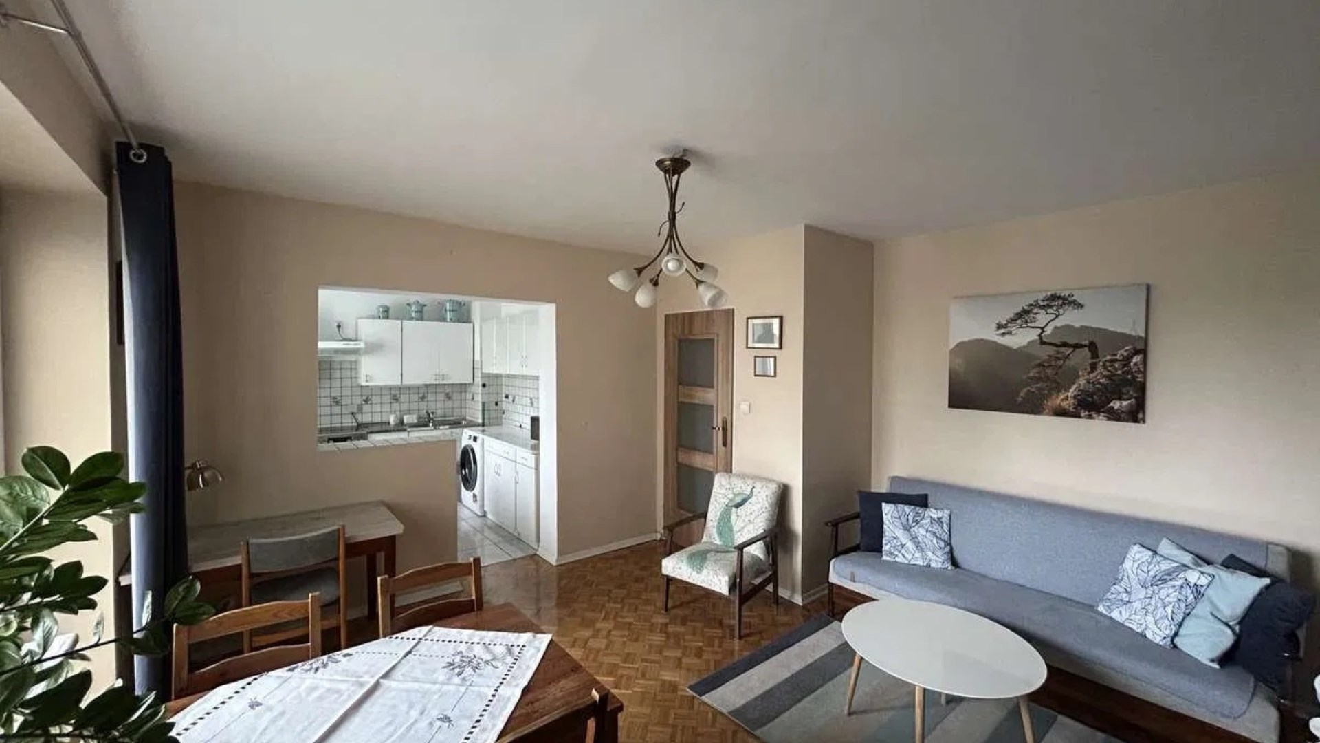 Wyposażenie mieszkania - meble kuchenne mogą pozostać do uzgodnienia z kupującym, sprzęt AGD lodówka, nowa kuchenka indukcyjna, nowa pralka również do uzgodnienia. Mieszkanie zadbane do odświeżenia lub do mniejszego remontu wg potrzeb nowych właścicieli, mozaika podłogowa cyklinowana 1 rok temu, plastikowe okna.