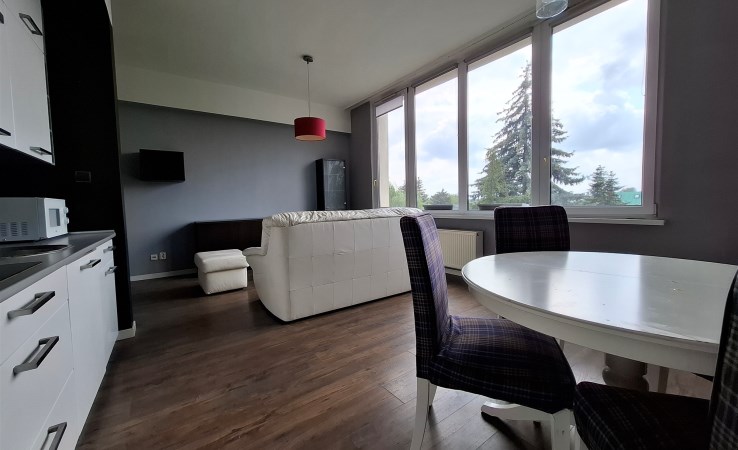 Mieszkanie 40,50 m2 z dużym balkonem na drugim piętrze w bloku.