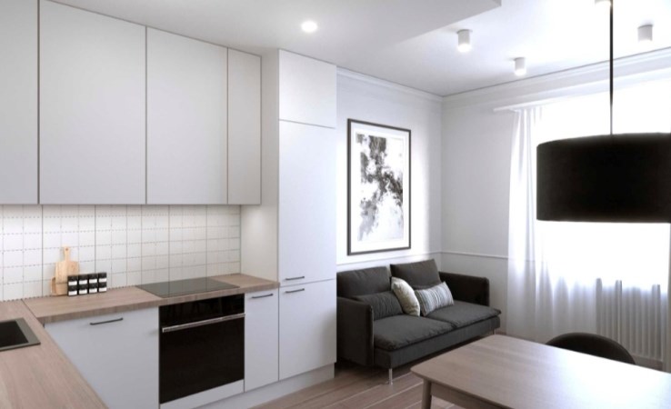 - Powierzchnia: 52 m² (pokój 18 m², pokój 14,5 m², kuchnia 9,4 m², korytarz 7,6 m², łazienka 3,2 m²)