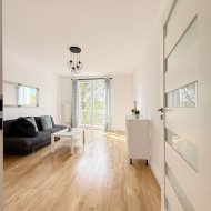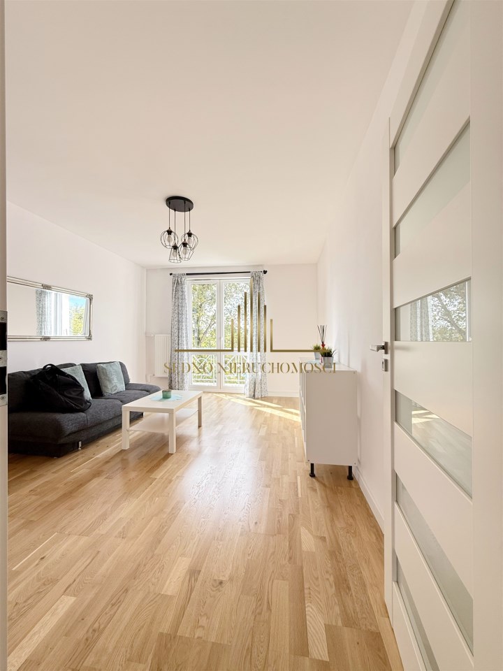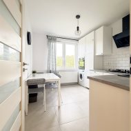 - Układ: Dwa niezależne pokoje, oddzielna kuchnia, łazienka, korytarz, balkon z widokiem na zieleń