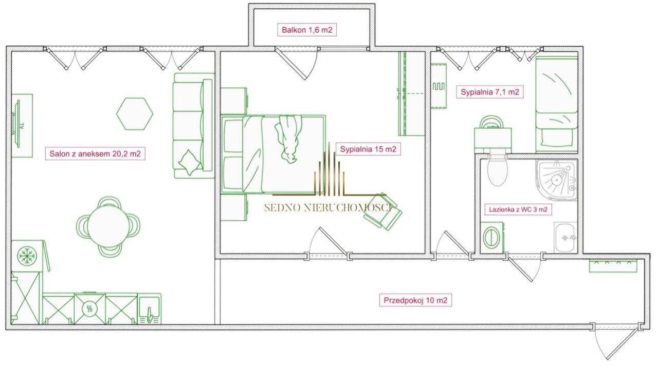 - Sypialnia o pow. 14m2