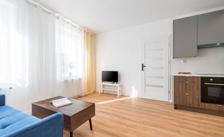 Wnętrze to salon z aneksem kuchennym i wyjściem na pokaźny balkon, sypialnia, łazienka z WC, przedpokój. Gotowe do zamieszkania! Wyposażone w meble i niezbędne AGD, wszystko w wysokim standardzie. Zamontowana klimatyzacja.