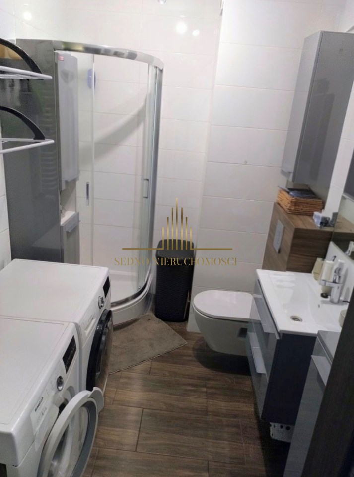 | Wyposażenie łazienki | WC, umywalka, pralka, lustro, kabina prysznicowa |