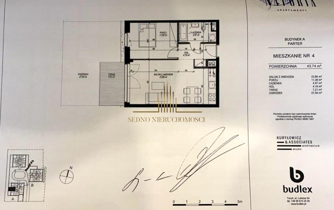 Zapraszam do zapoznania się z ofertą zakupu pięknego dwupokojowego mieszkania o powierzchni 44,04 m2 z dużym ogródkiem 27,5 m2 zlokalizowanego na Osiedlu Jar Naturia przy ul. Grasera. Mieszkanie usytuowane jest na parterze w trzypiętrowym apartamentowcu z windą, rok budowy 2020, mieszkanie użytkowane przez 1 właściciela od 2024 roku. Mieszkanie dwustronne południe-zachód, w pełni rozkładowe.