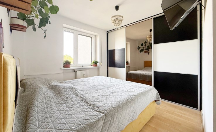 Wnętrze to salon z wyjściem na pokaźną loggię, 2 x sypialnia, oddzielna, jasna kuchnia, łazienka z WC, przedpokój. Gotowe do zamieszkania! Wyposażone w meble, niezbędne AGD i RTV oraz klimatyzację. Do mieszkania przynależy piwnica ale i dodatkowa komórka lokatorska. Pod blokiem wiele wolnych miejsc parkingowych dla mieszkańców.