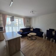 - Układ: Salon z aneksem kuchennym, dwa pokoje, łazienka, korytarz, balkon ok. 5 m²