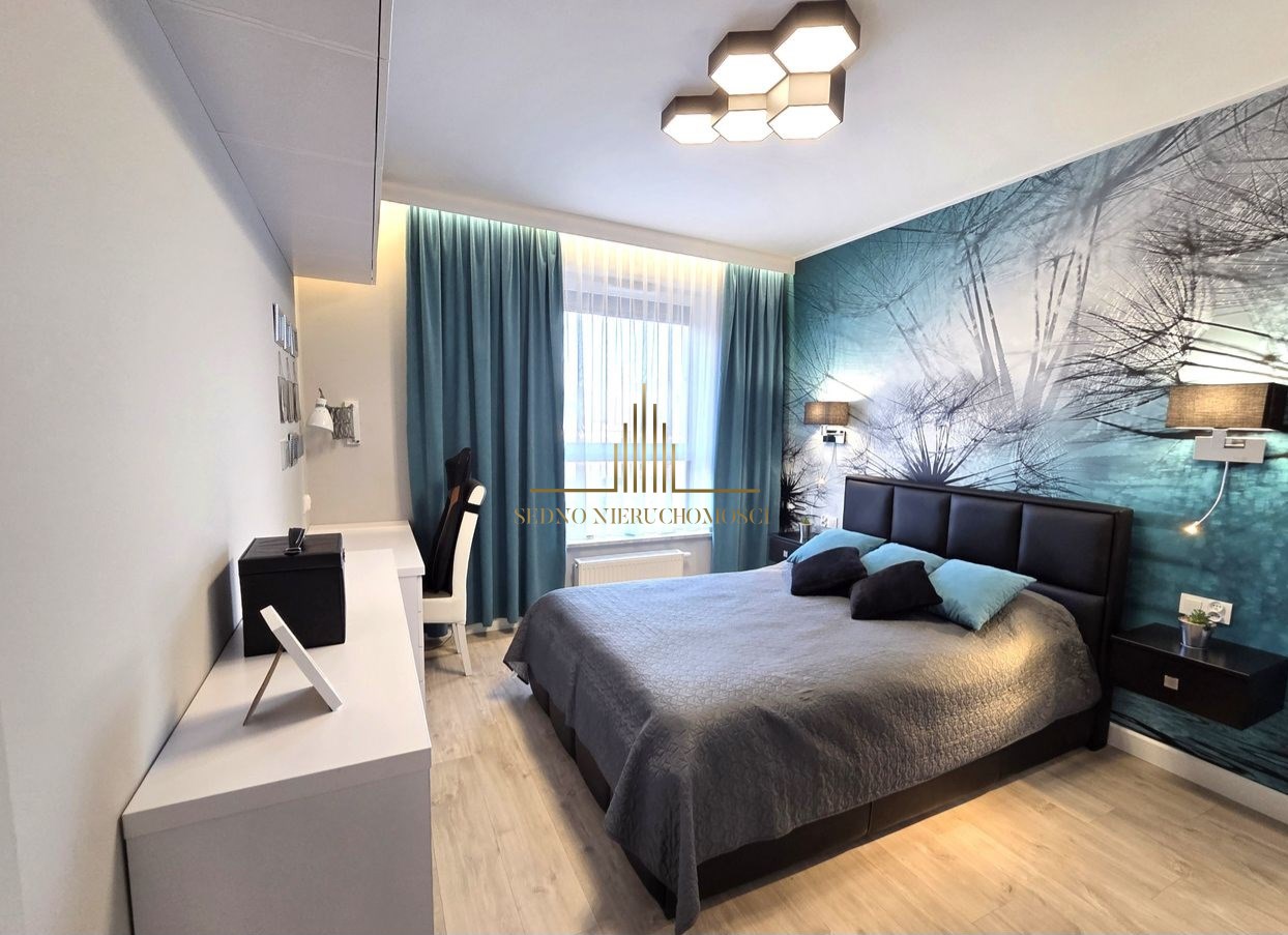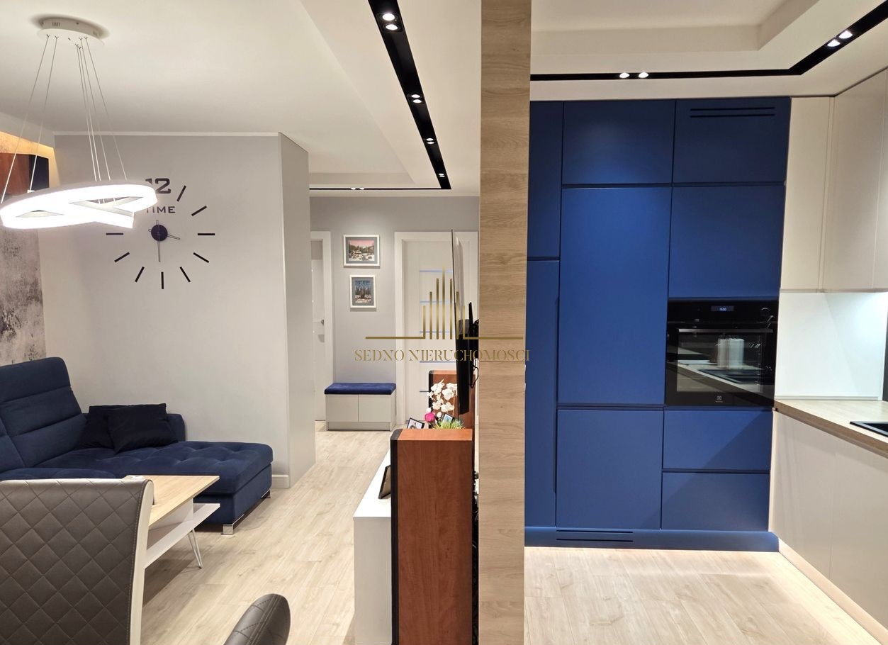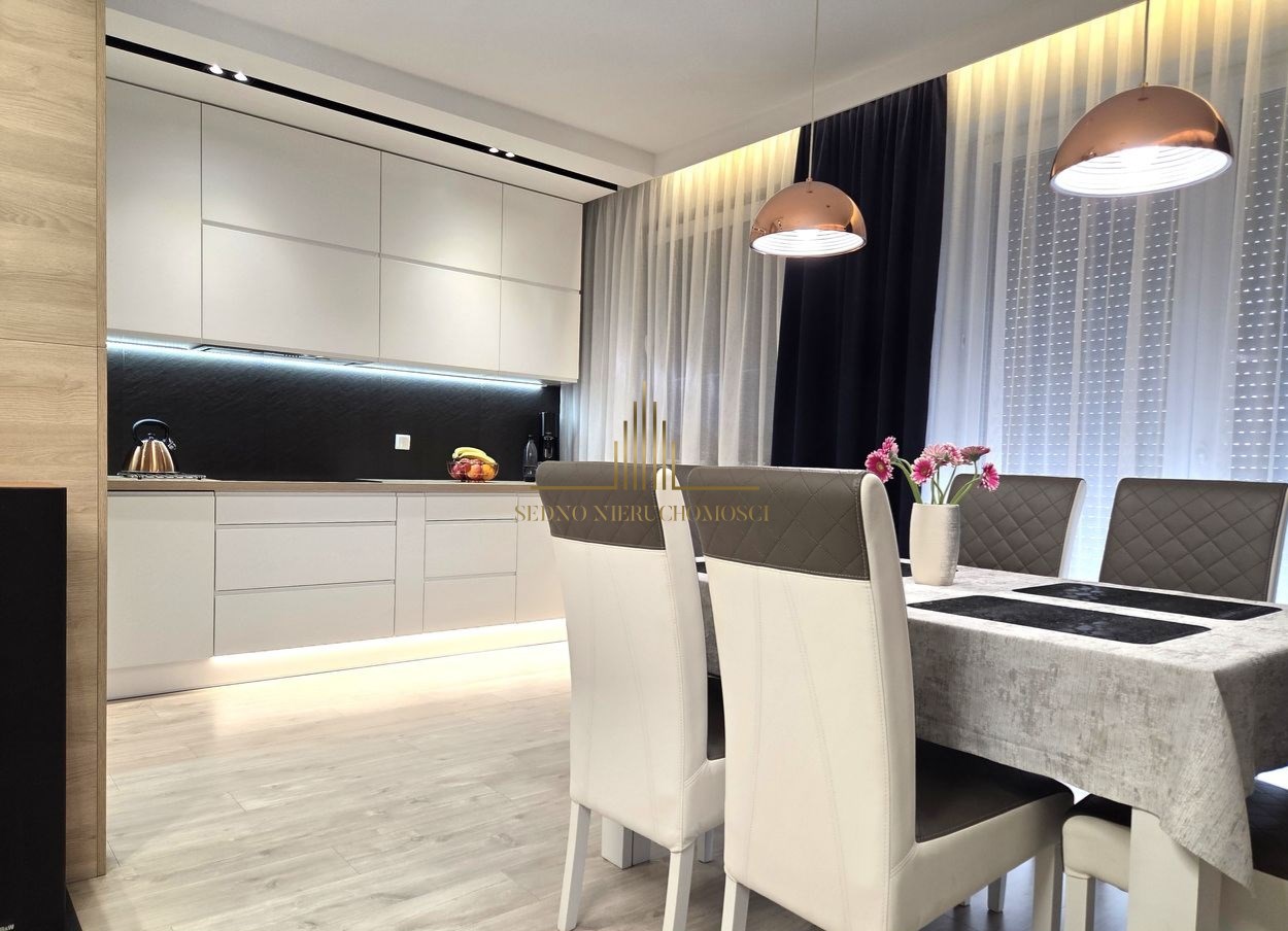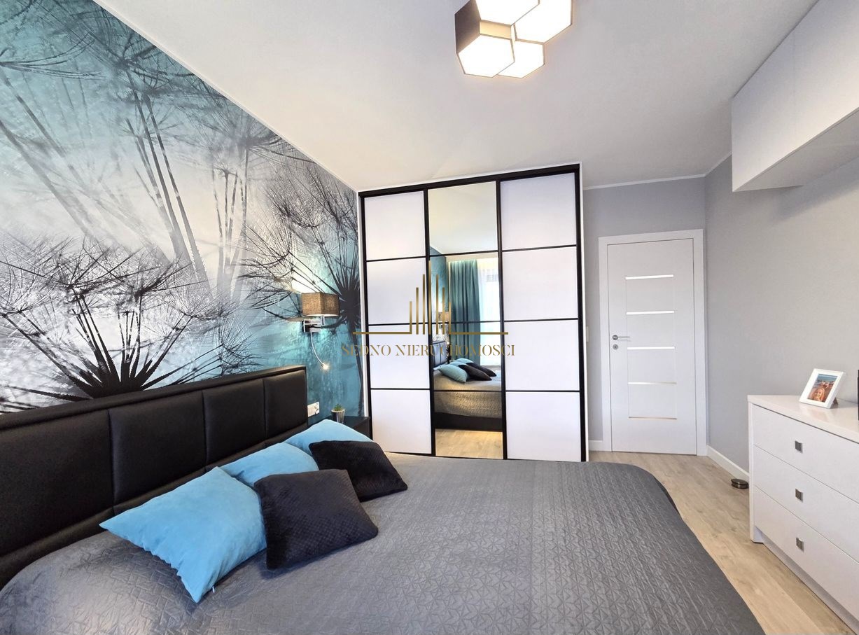 Wnętrza zadbane i w pełni wyposażone, we wszystkich pomieszczeniach meble zrobione przez stolarza na wymiar. W kuchni zmywarka, lodówka, piekarnik, płyta indukcyjna i okap. W łazience zabudowana pralko-suszarka, we wszystkich oknach rolety zewnętrzne, we wszystkich oknach oprócz balkonowego moskitiery.
