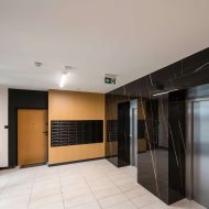 Zaprojektowany przez doświadczonego architekta, apartament wyróżnia się wysokiej jakości wykończeniem m.in podłoga z winylu wodoodpornego marki Quick Step, kuchnia: fornir dębowy + lakier, blaty, farby ceramiczne + sztukaterie, płytki wielkoformatowe Tubądzin + ceramika oraz biżuteryjne złote dodatki i armatura Omnires, drzwi wewnętrzne bezprzylgowe marki DRE model Nova 70