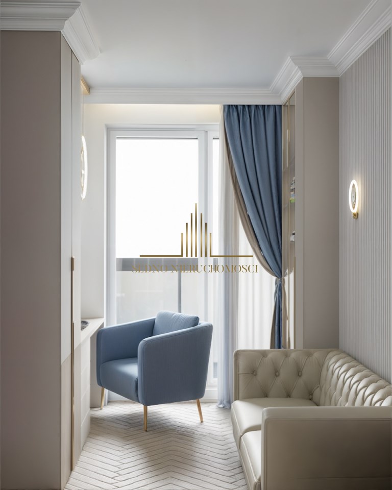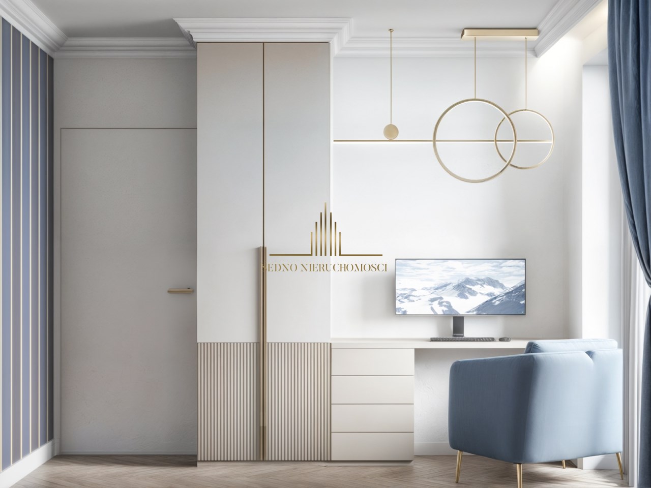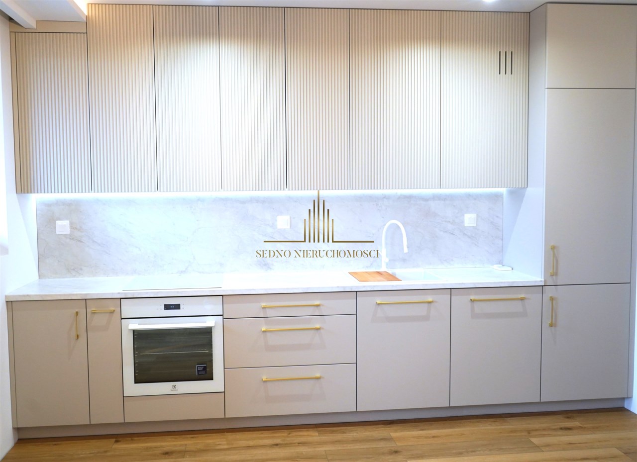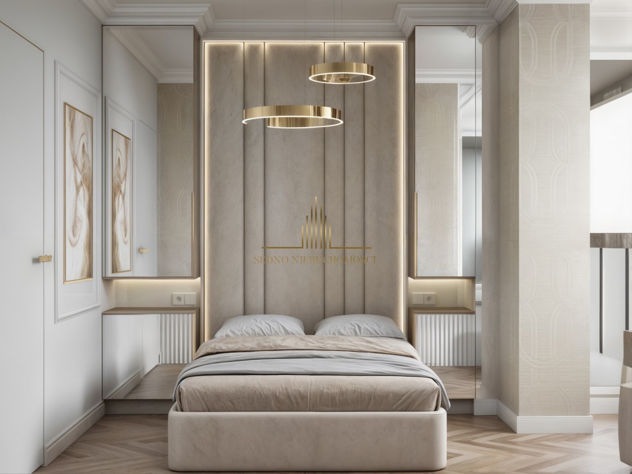 Apartament został wykończony pod klucz w najwyższym standardzie. Wnętrza zostały zaprojektowane przez architekta (Tulla Home Interior), dzięki czemu są nie tylko estetyczne, ale także bardzo funkcjonalne tworząc spójną, elegancką przestrzeń . Inspiracją były kolory ziemi – odcienie beżu i brązu, w zestawieniu ze strukturą drewna oraz dodatkami w kolorach złota – ponadczasowe, eleganckie, a jednocześnie kojące i ciepłe. Nowi mieszkańcy pokochają to mieszkanie za jego jasny, przestrzenny, a przy tym przytulny charakter.