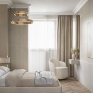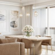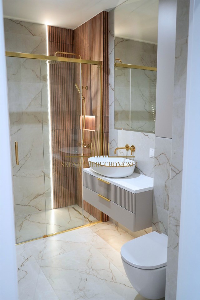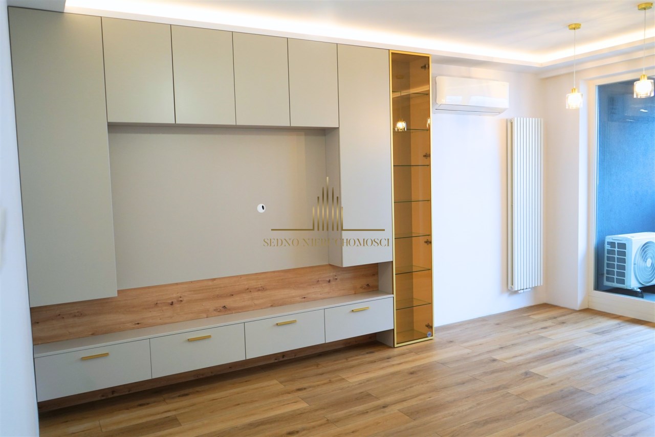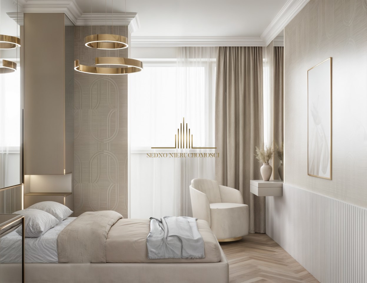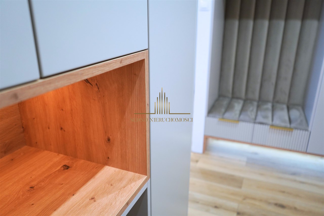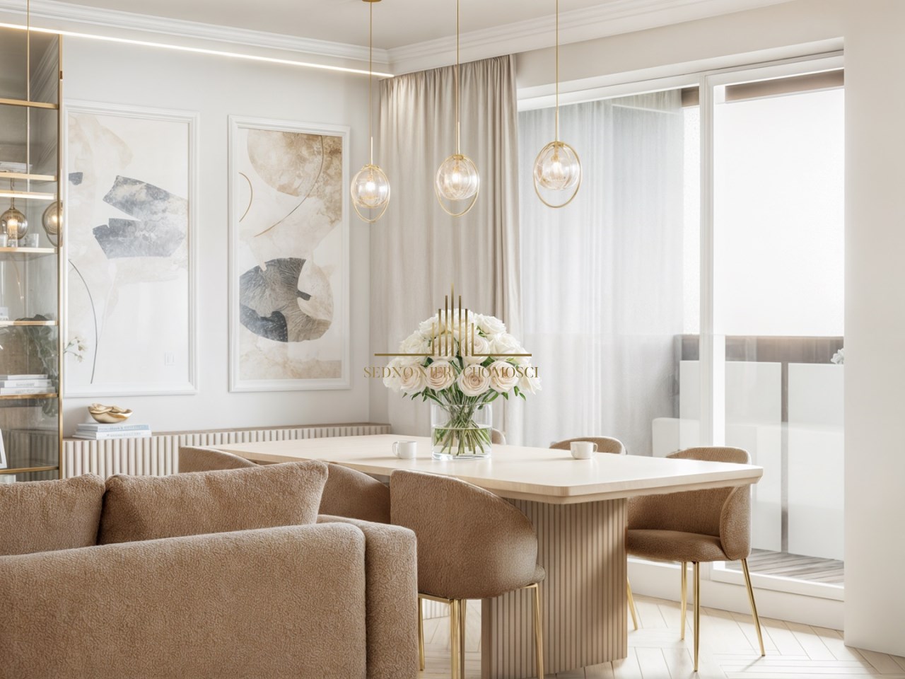 Apartament został wykończony pod klucz w najwyższym standardzie. Wnętrza zostały zaprojektowane przez architekta (Tulla Home Interior), dzięki czemu są nie tylko estetyczne, ale także bardzo funkcjonalne tworząc spójną, elegancką przestrzeń . Inspiracją były kolory ziemi – odcienie beżu i brązu, w zestawieniu ze strukturą drewna oraz dodatkami w kolorach złota – ponadczasowe, eleganckie, a jednocześnie kojące i ciepłe. Nowi mieszkańcy pokochają to mieszkanie za jego jasny, przestrzenny, a przy tym przytulny charakter.